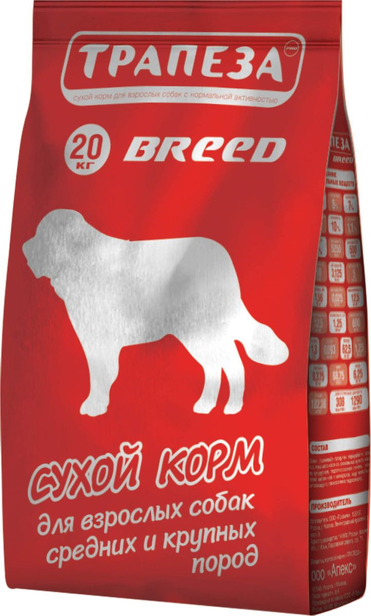 Сухой корм "Трапеза Брид" — сбалансированный сухой корм для собак с нормальной активностью. Разработан с использованием уникальной формулы, которая предусматривает сочетание основных питательных компонентов — белков, жиров, клетчатки, а также витаминного и минерального комплексов для собак с нормальной активностью. Сухой корм "Трапеза Брид" при постоянном применении обеспечивает полноценное питание для собак с нормальной активностью на протяжении всей жизни. Специальная форма гранул разработана с учетом строения челюстей взрослой собаки и позволяет животному в полной мере насладиться своим завтраком, обедом или ужином и не чувствовать после еды дискомфорт в желудке, а также избежать проблем с пищеварением.