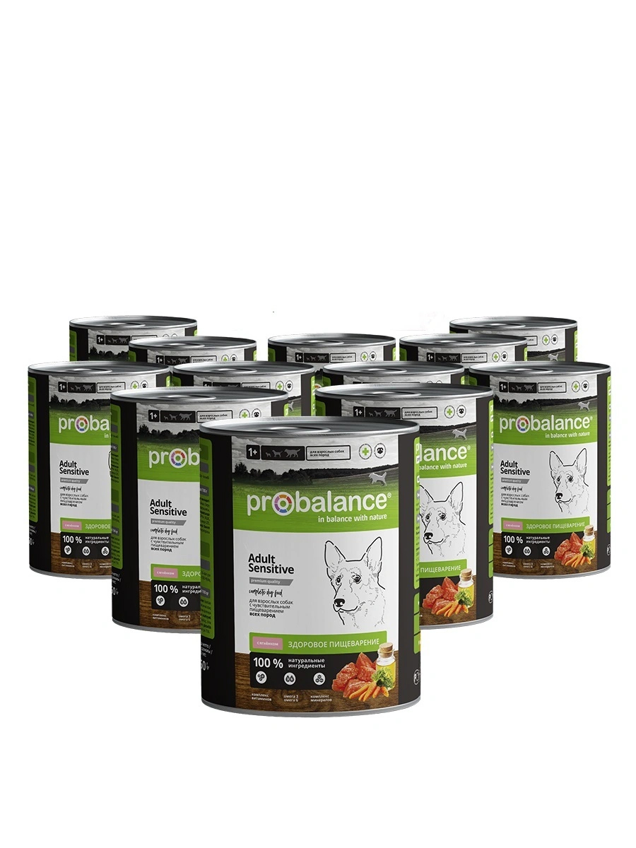 Полнорационный сбалансированный консервированный корм премиум класса для собак с чувствительным пищеварением. Консервированный корм Probalance "Sensitive" специально разработан для кормления питомцев с чувствительным пищеварением и склонных к аллергии.В упаковке 12 шт. по 850 г каждая банка.