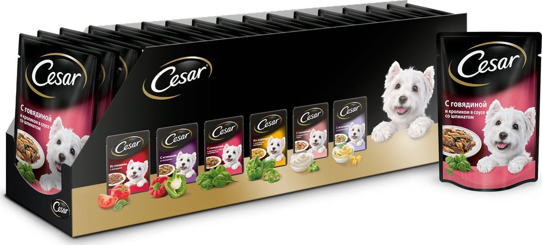 Консервы "Cesar" - это полнорационный консервированный корм для взрослых собак всех пород. Нежнейшие кусочки мяса, дополненные свежими овощами - идеальное блюдо для любой собаки. Консервы приготовлены исключительно из натурального сырья. Не содержат искусственных красителей, консервантов и усилителей вкуса.