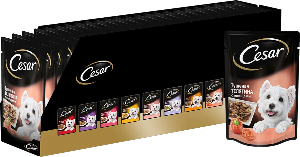 Новинка в ассортименте Cesar®! Тушеная телятина с овощами в желе – изысканное угощение для Вашего питомца.