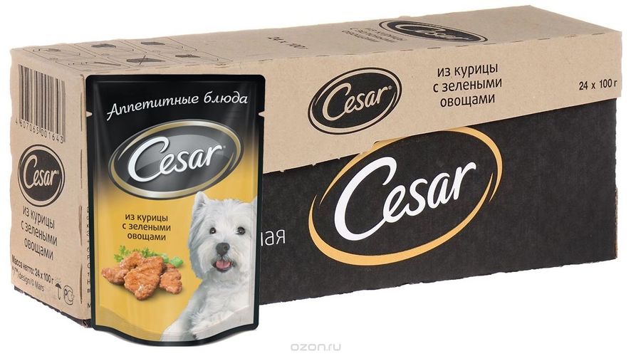 Консервы "Cesar" - это полнорационный консервированный корм для взрослых собак всех пород. Нежнейшие кусочки мяса, дополненные свежими овощами - идеальное блюдо для любой собаки. Консервы приготовлены исключительно из натурального сырья. Не содержат искусственных красителей, консервантов и усилителей вкуса.
