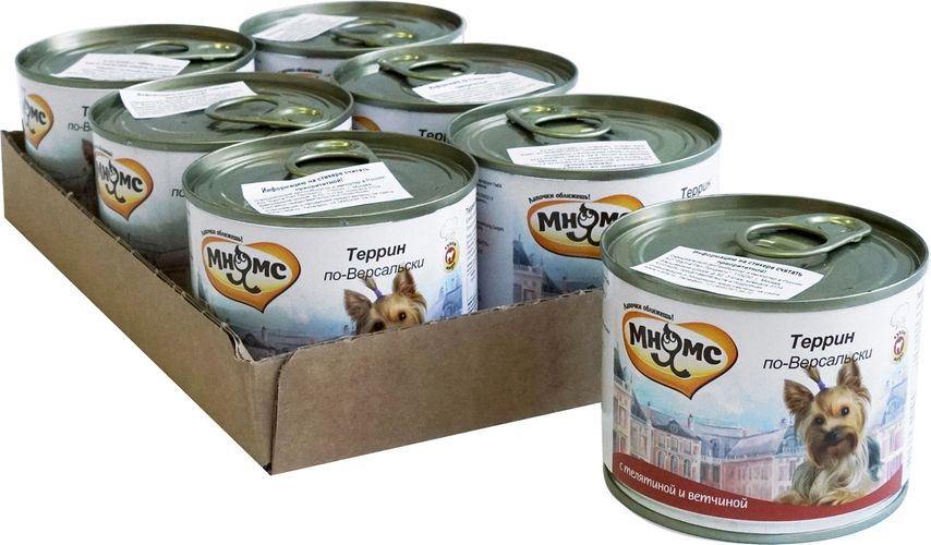 Форма выпуска: консервы 200 г.Анализ компонентов: Белок - 10,9%, Жир - 6,6%, Клетчатка - 0,4%, Зола - 2,4%, Влажность - 79%Состав: мясо (68%, из них телятина 58%, ветчина 10%), грибы (2%), минералы, прованские травы (0,2%), льняное масло (0,1%), витамин Е (30 мг), витамин D3 (200 МЕ), цинк (15 мг), марганец (3 мг), йод (0,75 мг), селен (0,03 мг).Нормы кормления по весу взрослого животного: при кормлении небходимо учитывать возраст и активность животного. Собака всегда должна иметь доступ к свежей питьевой воде.