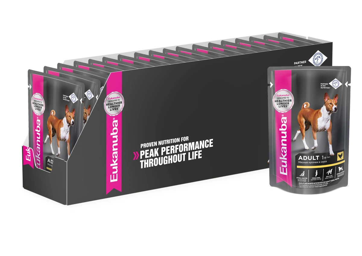 Консервы Eukanuba "Adult" - это полноценное и сбалансированное питание для взрослых собак всех пород в возрасте старше 1 года с высококачественным животным белком.