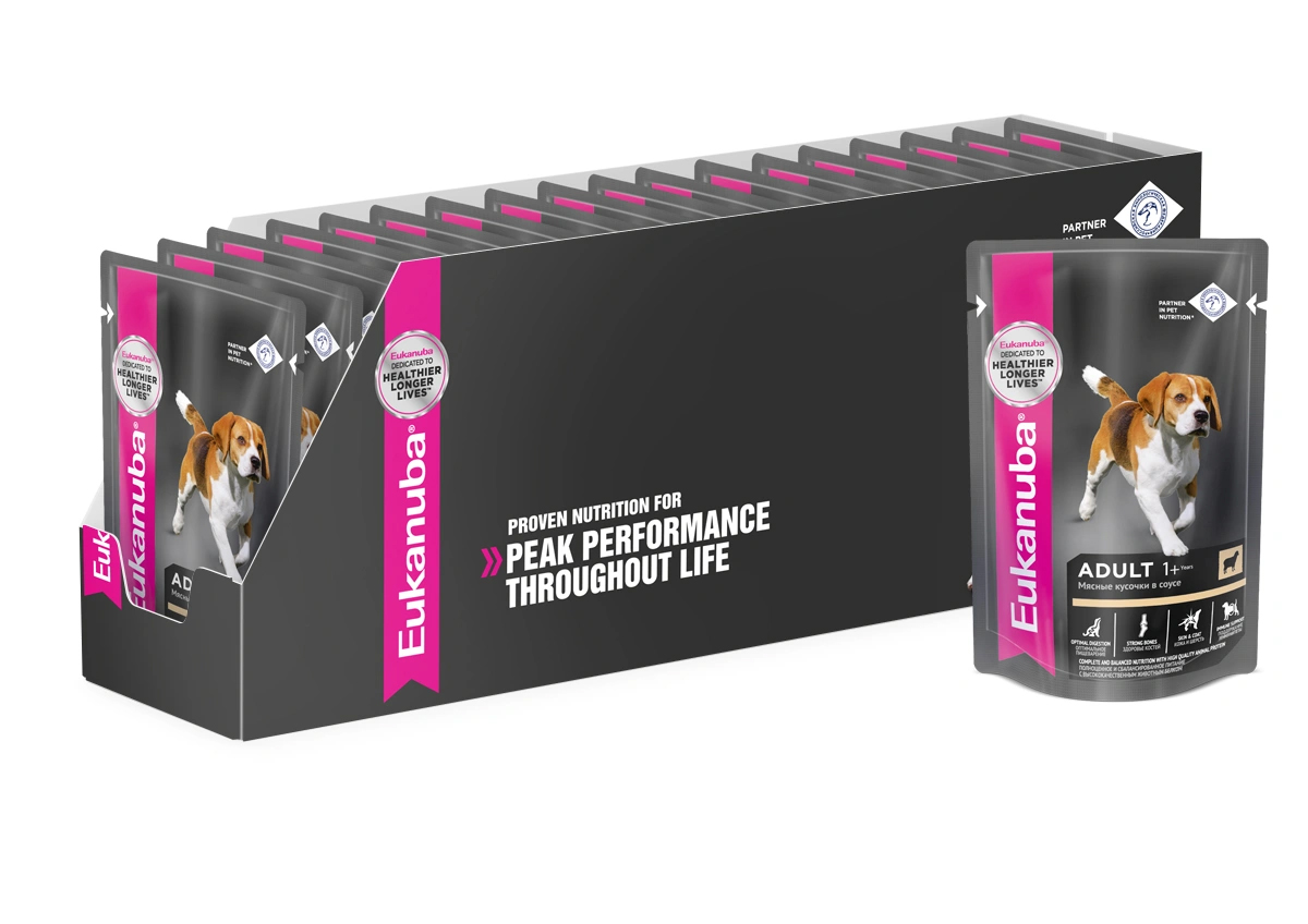 Полноценное и сбалансированное питание для взрослых собак всех пород в возрасте старше 1 года с высококачественным животным белком. ОПТИМАЛЬНОЕ ПИЩЕВАРЕНИЕ