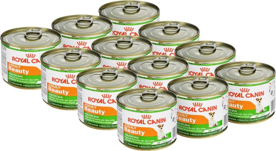Консервы Royal Canin "Adult Beauty" создан специально для взрослых собак с 10 месяцев и старше, весом до 10 кг. Предназначен для поддержания здоровья шерсти и кожи. Формула "Beauty" обогащена жирными кислотами и содержит специальный защитный комплекс. Состав: мясо и мясные субпродукты, злаки, субпродукты растительного происхождения, минеральные вещества, масла и жиры.