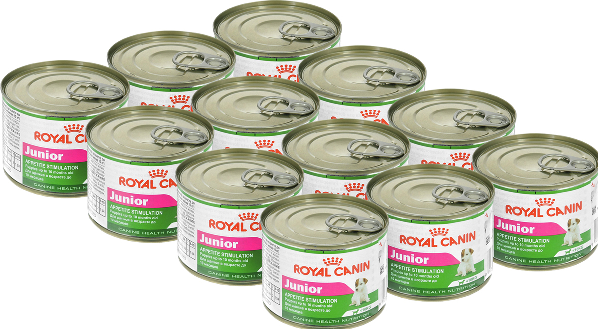 Консервы Royal Canin "Junior" - полнорационный корм для щенков в возрасте до 10 месяцев, который обладает высокой вкусовой привлекательностью и способен удовлетворить потребности щенка в питании в период роста. Состав: мясо и мясные субпродукты, злаки, масла и жиры, субпродукты растительного происхождения, минеральные вещества.