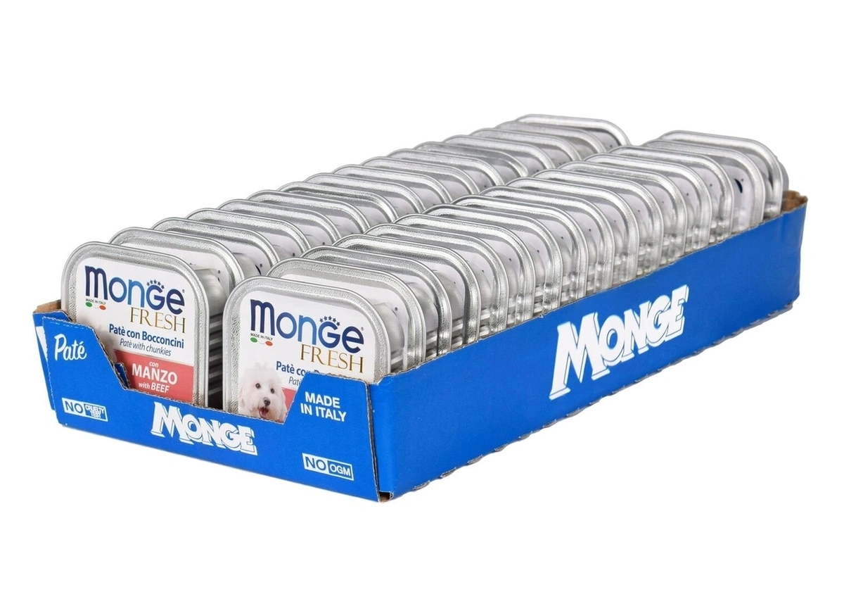 Полнорационныи? корм для собак - паштет из мяса говядины.Monge Fresh — это вкусные паштеты с аппетитными кусочками отборного свежего мяса.
