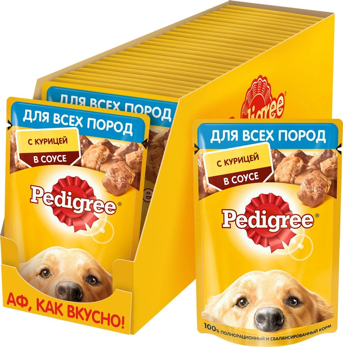 Собаки дарят нам так много! Поэтому в ответ они должны получать только лучшее. Корм Pedigree для взрослых собак содержит все, что нужно питомцам старше года. Наш рацион оптимально сбалансирован и насыщен необходимыми витаминами и минералами. И конечно же, мясные кусочки в соусе такие вкусные, что нос оближешь!