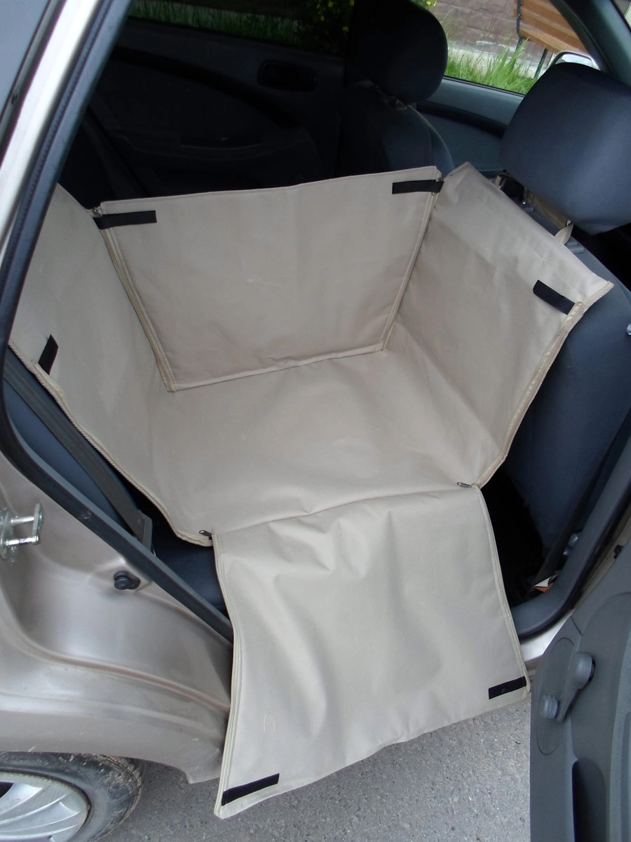 Очень удобный гамак с мягкими боковыми стенками для защиты вашего автомобиля и обивки сидений от грязи и когтей при перевозке собак. Высокопрочная ткань ПВХ 600D с пропиткой, водонепроницаемая, не скользит. Регулировочные ремни обеспечивают надежную фиксацию. Легко и просто устанавливается: проденьте фиксирующие ремни через подголовники переднего и заднего сидений (крепление фастекс), отрегулируйте длину. Боковые стенки можно застегнуть на застежку молнию (всего 4 разъемных молнии, дополнительно фиксируются липучкой, чтобы молния не расстегнулась) и накидка превратится в одноместный гамак (приобретет форму квадратной корзины), а можно опустить их как покрывало.