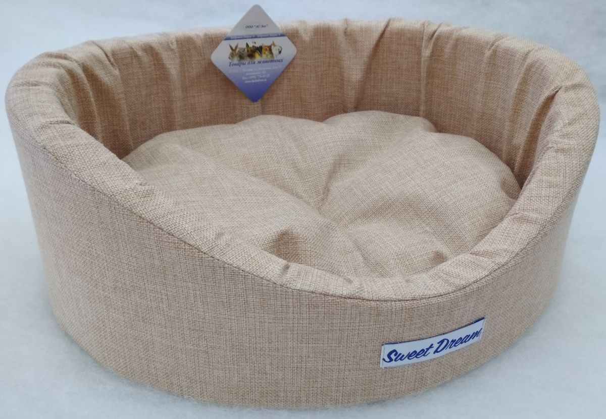 Лежак непременно станет любимым местом отдыха вашего домашнего животного. Ткань мебельная рогожка, антивандальная, плотная, с водооталкивающим покрытием, поролон мебельный, синтепон, синтепух, спанбонд.
