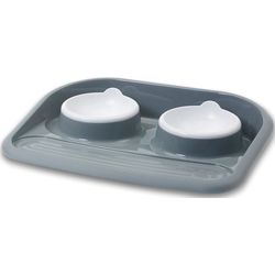 Двойная миска Эллипс для собак, для кошек SMART ANIMAL (23*40,5 см, Серый)