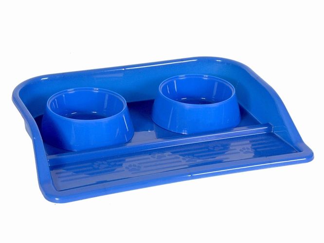 Набор мисок из коллекции «Феликс» предназначен для кормления Вашего любимца. В набор входят две миски и поддон. Изделие выполнено из прочного качественного пищевого пластика. Благодаря поддону крошки и капли не будут попадать на пол и место для кормления питомца будет всегда чистым. Миски закрепляются на поддоне и не ездят по полу при приеме пищи питомцем, и легко снимаются для мойки.
