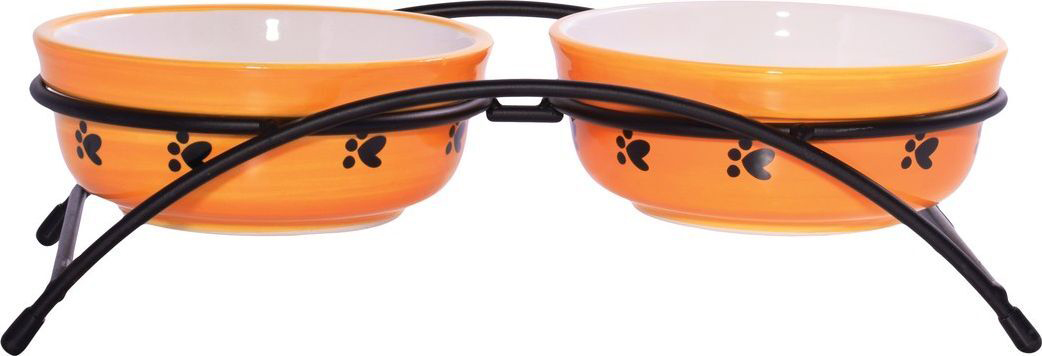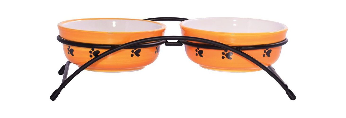 Керамические миски на подставке с интересным дизайном - стильное дополнение вашего интерьера. - 2 керамические миски на подставке;
