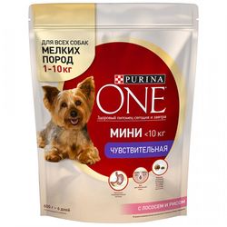 Сухой корм для собак Purina ONE МИНИ Чувствительная для мелких пород с лососем и рисом, 600 г