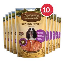 Лакомство для взрослых собак "Деревенские лакомства", куриные грудки сушеные, 90 г-10 шт!