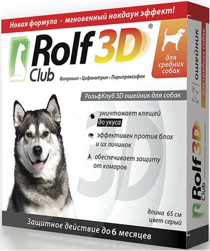 РольфКлуб 3D ошейник для собак применяют для лечения и профилактики арахноэнтомозов, вызываемых блохами, вшами, власоедами, иксодовыми клещами, защиты собак от нападения двукрылых кровососущих насекомых и профилактики трансмиссивных заболеваний (бабезиоз, боррелиоз, дирофиляриоз).
