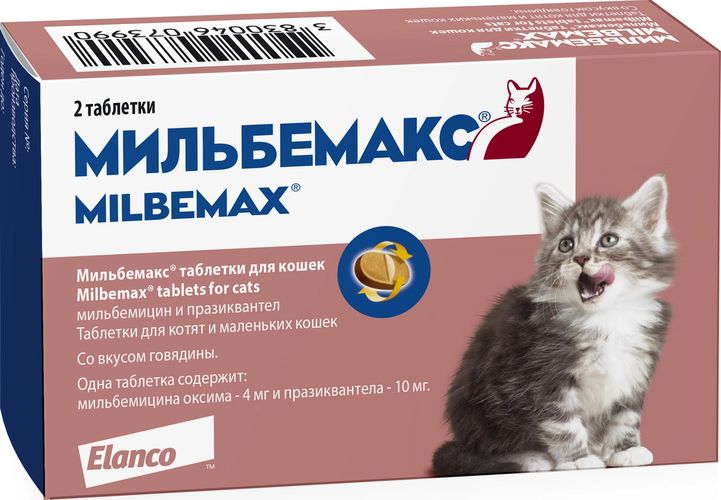 Elanco Мильбемакс антигельминтик для котят и молодых кошек 2 таб. Эффективное антигельминтное средство широкого спектра действия.