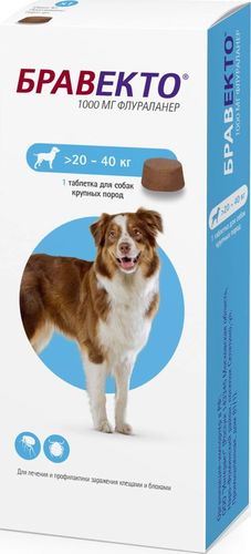 Intervet Бравекто жевательная таблетка для собак 20-40кг 1000мг