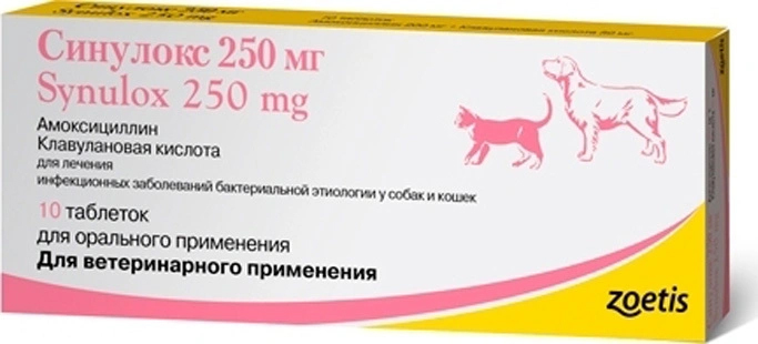 Синулокс применяют для лечения инфекционных заболеваний собак и кошек бактериальной этиологии, включая: кожные заболевания (в том числе глубокую и поверхностную пиодерму);