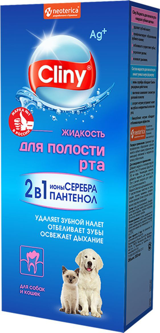 Жидкость для полости рта "Cliny" предназначена для кошек и собак. Применяют для профилактики образования зубного камня, устранения уже имеющихся отложений на зубах и неприятного запаха у собак и кошек. "Жидкая зубная щетка" для добавления в питьевую воду из расчета 5 мл на 250 мл.