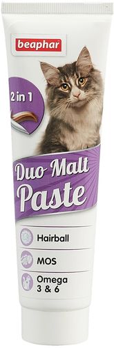Паста Beaphar "Duo Malt Pasta" предназначена для выведения шерсти из кишечника двойного действия: предотвращает образование волосяных комков и обеспечивает нормальное функционирование кишечника. Содержит 2 слоя: мальт-пасту (темно-коричневый) и пасту-кондиционер (светло-коричневый). Мальт-паста способствует естественному очищению желудочно-кишечного тракта кошек и котят от проглоченной шерсти, предупреждает образование волосяных комков в желудке животного. Избавляет кошек от рвоты, потери аппетита, закупорки кишечника, запоров. Содержит карамель, которая усиливает действие пасты и делает ее более вкусной. Паста-кондиционер содержит БИО-МОС (маннан олигосахариды), который абсорбирует токсичные вещества из организма и формирует здоровую кишечную флору. Составляющие пасты не только очищают желудочно-кишечный тракт, но и укрепляют волосяной покров и делают шерсть красивой и здоровой. Регулярное применение пасты поможет избежать серьезных проблем со здоровьем кошки. Состав: масла и жиры, молоко и молочные продукты, экстракт солода (не менее 12 % по сухому веществу), дрожжи.