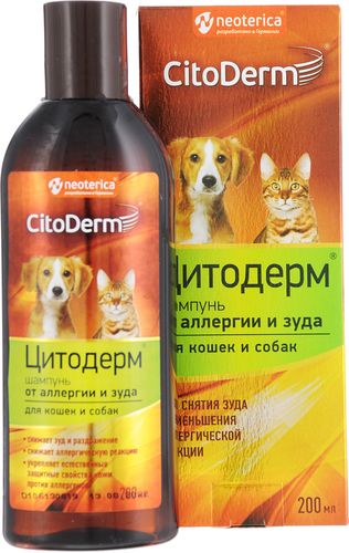 CitoDerm шампунь от аллергии и зуда – косметико-гигиеническое средство для ухода за кожей и шерстью животных, склонных к аллергии. - снимает зуд и раздражение;