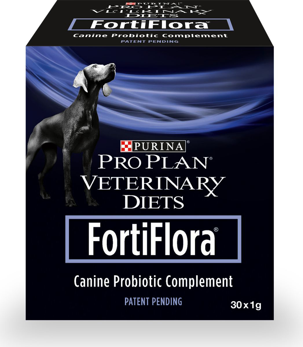 Кормовая добавка Pro Plan "FortiFlora" для взрослых собак и щенков помогает поддержать баланс микрофлоры и здоровье кишечника.